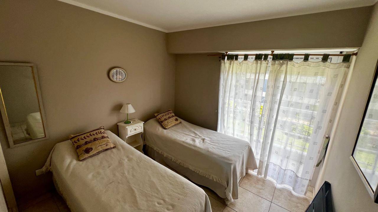 Dormitorio matrimonial en suite, segundo dormitorio con dos camas individuales y baño completo.