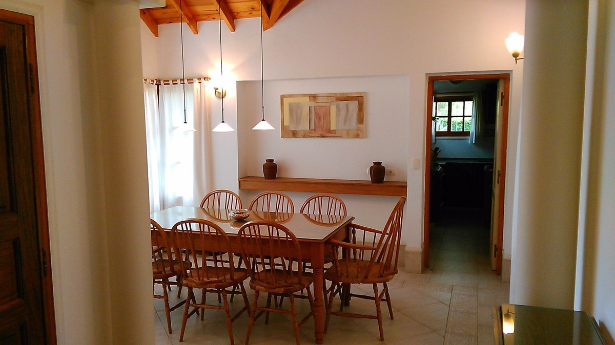 Excelente casa en en una planta. Consta de amplio y luminoso living-comedor, Cocina con comedor diario, baño, habitación ppal en suite, dos dormitorios con camas individuales y baño completo. Lavadero, dependencia de servicio con baño y garage (capacidad para 2 autos). Parrilla y amplio jardin totalmente cerrado. EQUIPAMIENTO: Heladera con freezer. Microondas. Lavarropas automático. Teléfono. TV cable.